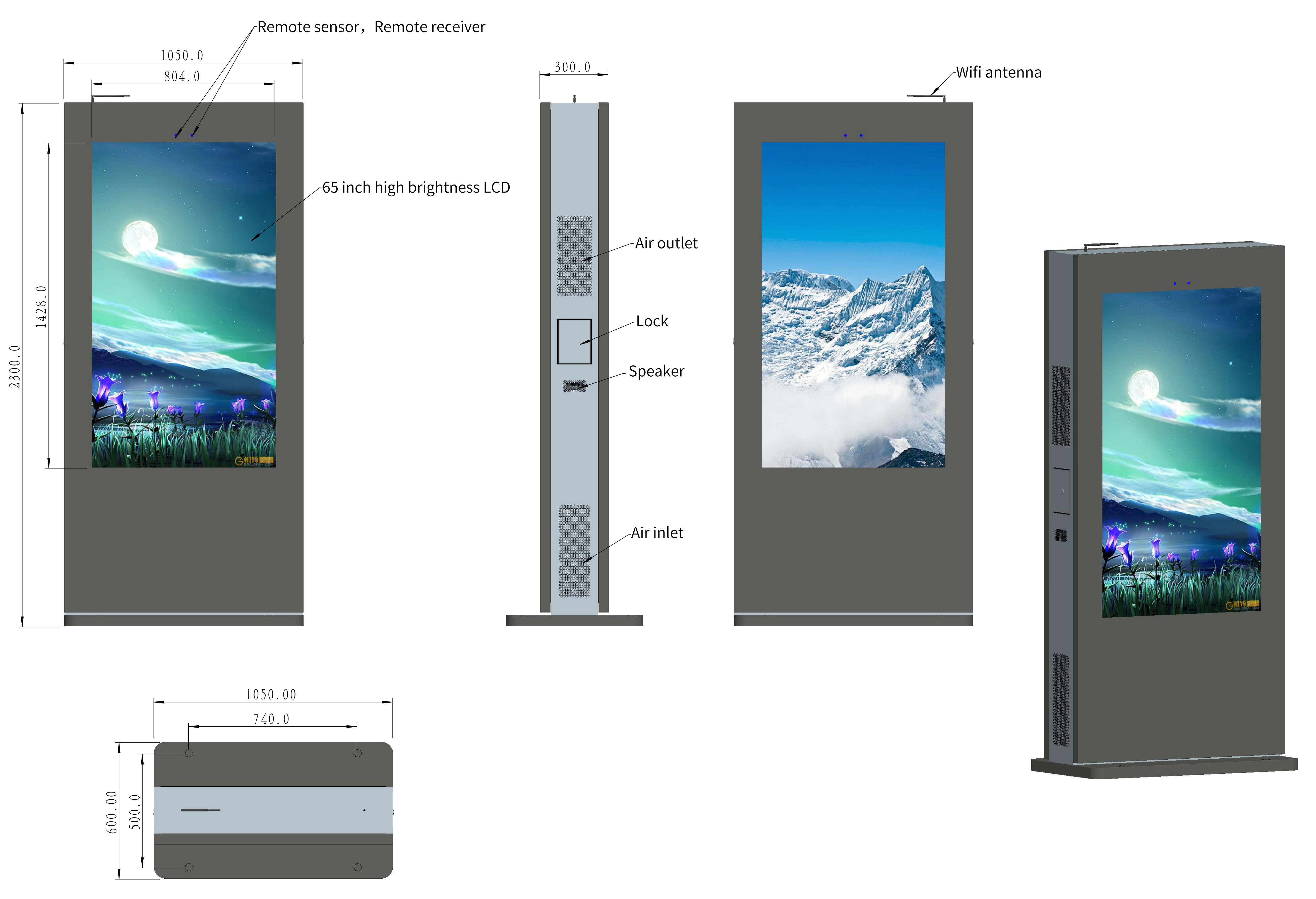 6.Q: What are the size specifications of the digital signage outdoor displays?